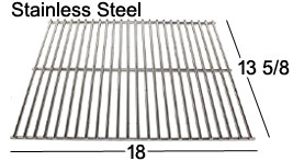 This heavy duty, stainless steel briquette grate is made of 304 stainless steel rod. The rod is 1/4 inch in diameter. The briquette grate measures 18 inches wide, from left to right, and 13 5/8 inches front to back. Custom made for MHP 'JNR' models. This stainless steel grate replaces the porcelain coated briquette rack.